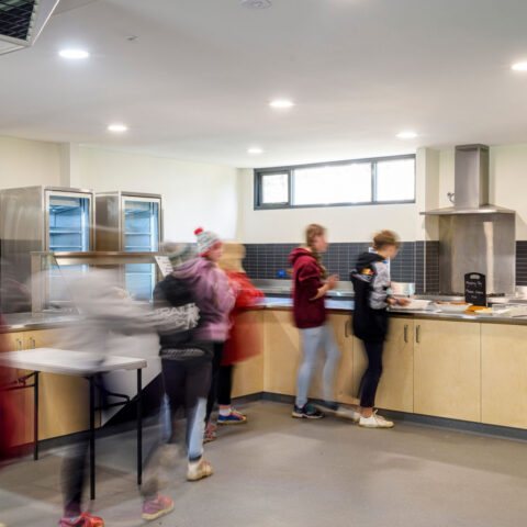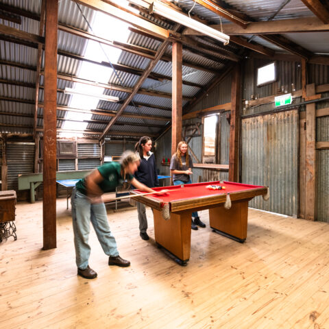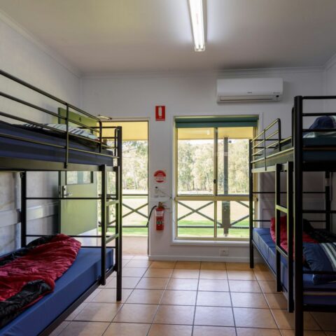 With rustic charm and a contemporary fit-out, the bunkhouses provide flexible, climate-controlled lodging ideal for students.